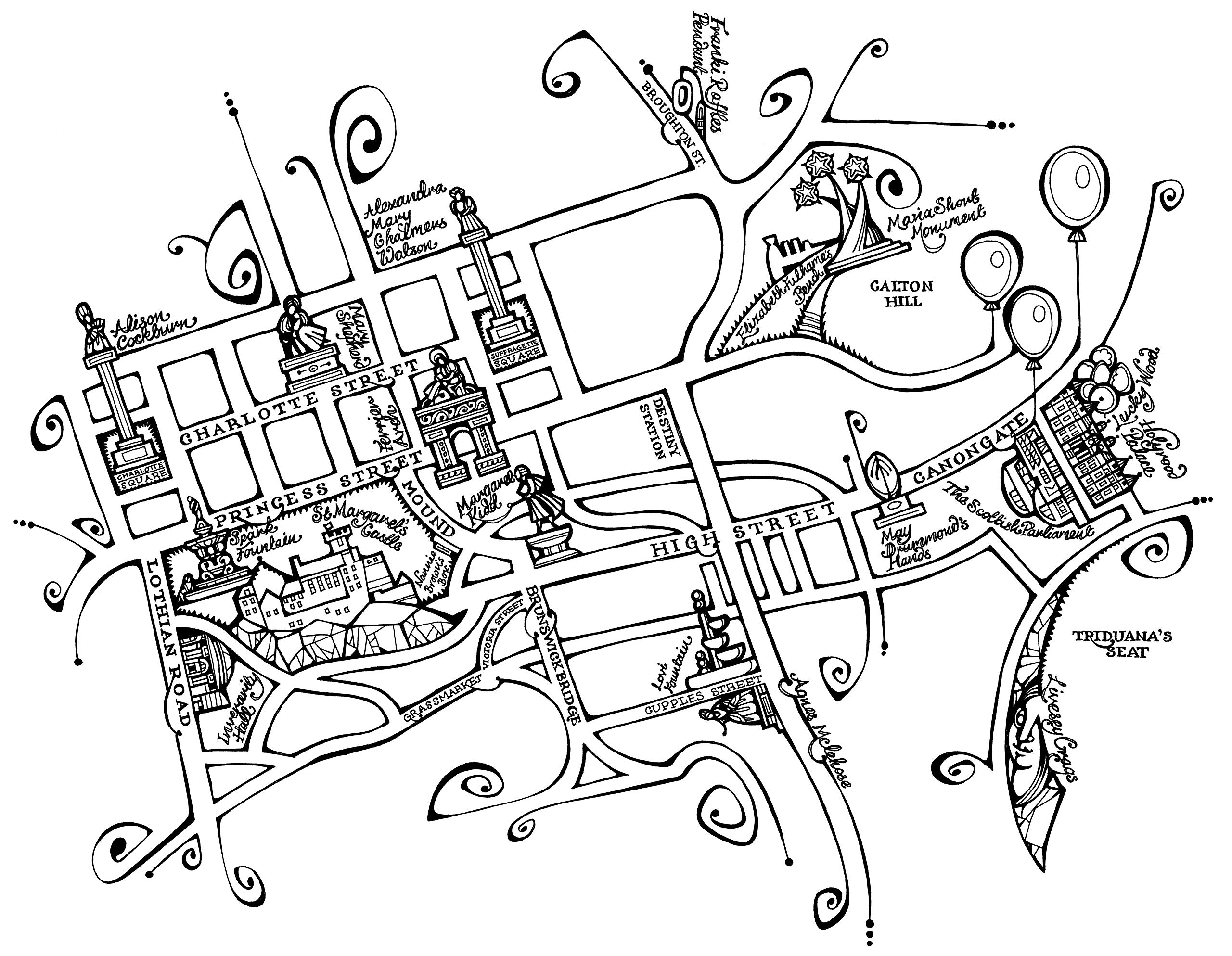 Where are the Women? A Guide to an Imagined Scotland is a guidebook for a hypothetical Scotland in which women are memorialised in the built environment to the same extent as men. Region by region, Sheridan traverses the country, renaming some features and creating others. In each case, she recounts the stories of the women who have contributed to so much, not just in Scotland but around the world. Sheridan also echoes recent calls to move away from statues as a primary form of memorialisation, instead suggesting more creative monuments such as events, benches, murals, fountains, and parks. Each chapter has a beautiful stylised map and sketches of some of the monuments by illustrator and designer Jenny Proudfoot.