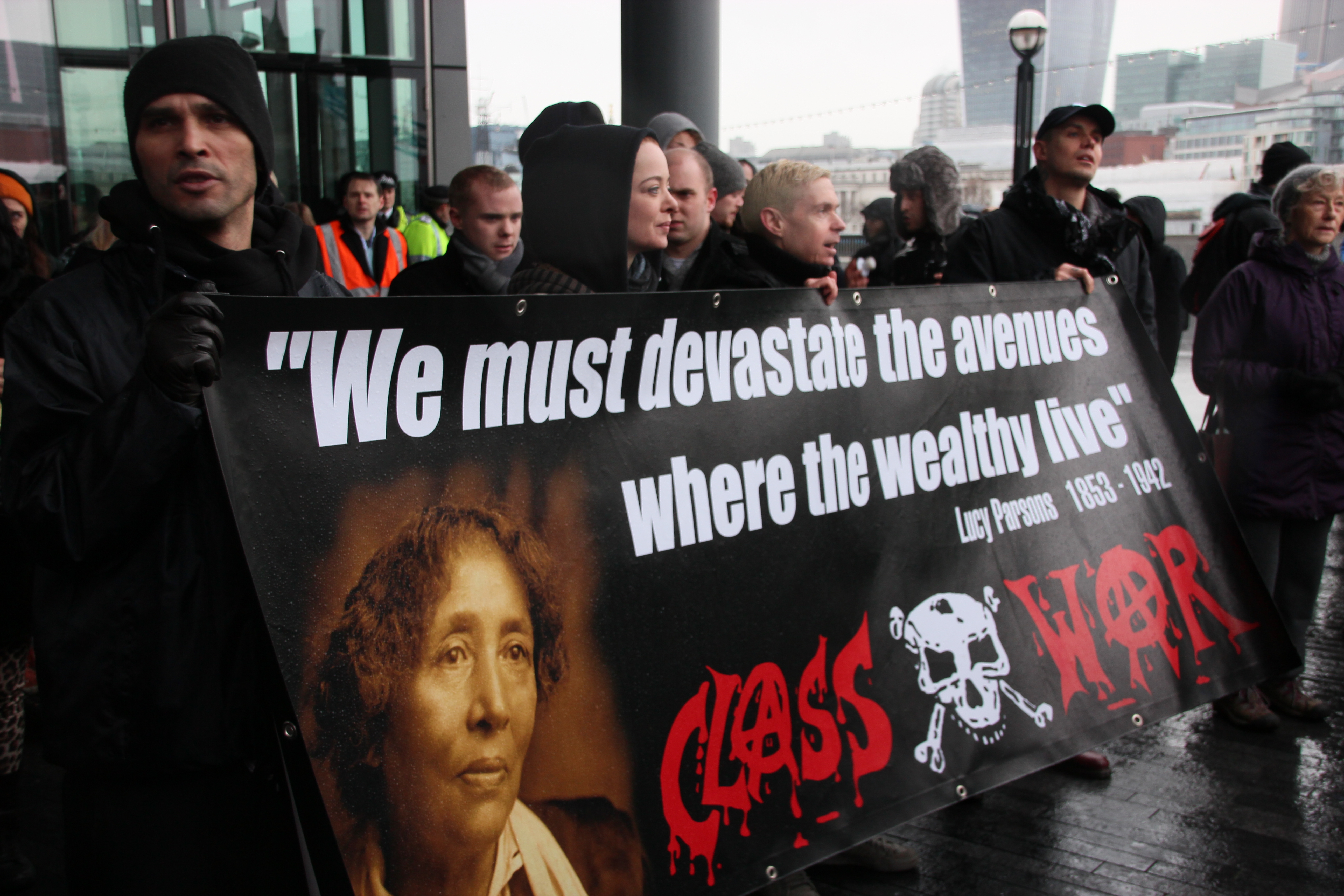 The City of London provided a meaningful backdrop to the demonstration, but does tend to be empty at the weekends, so there weren’t many spectators until the march made it to Westminster (Photo: Hannah Awcock).