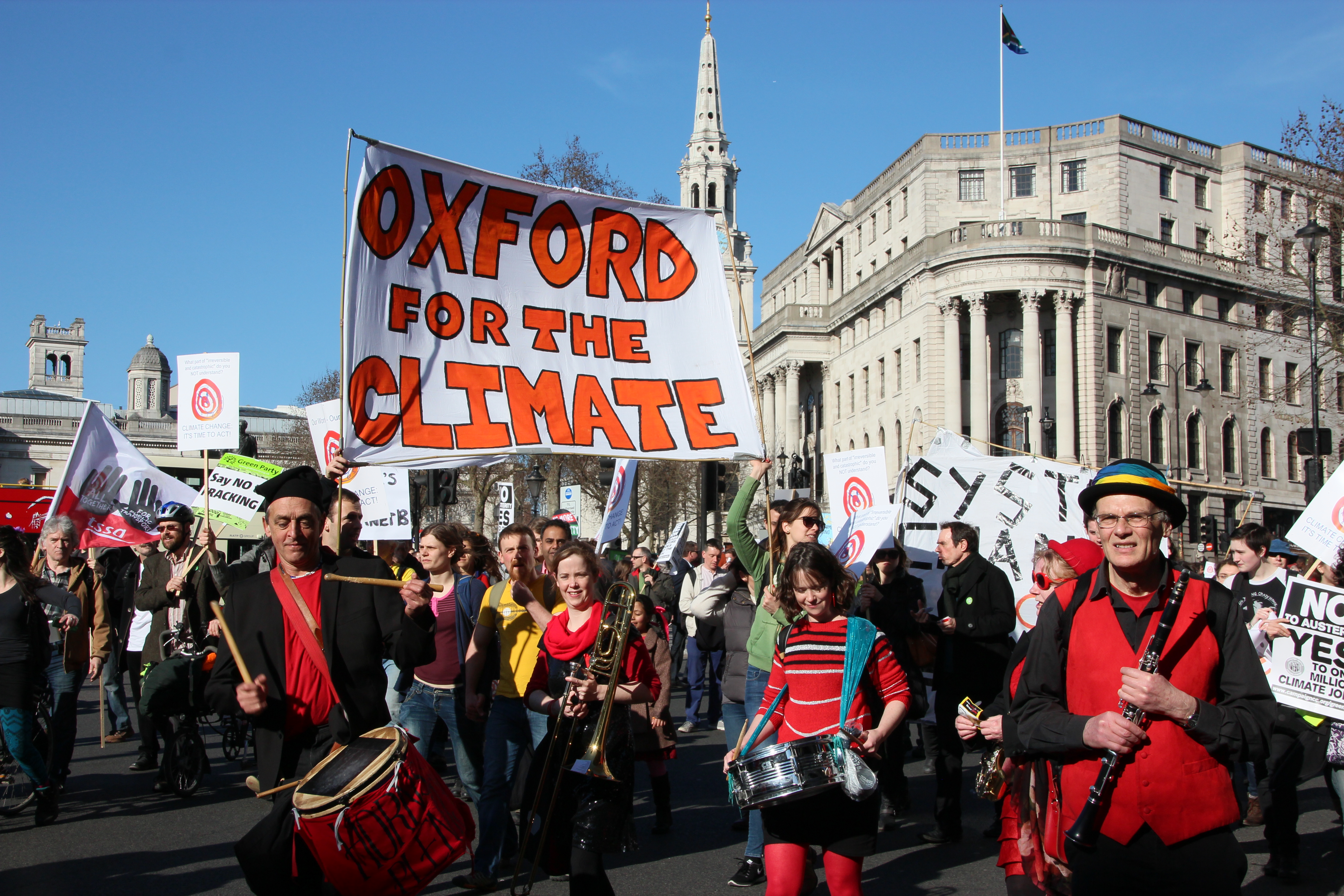 This contingent from Oxford brought their own band. Music is a really important part of protest marches, helping to left the mood and keep the marchers upbeat and energised (Photo: Hannah Awcock).