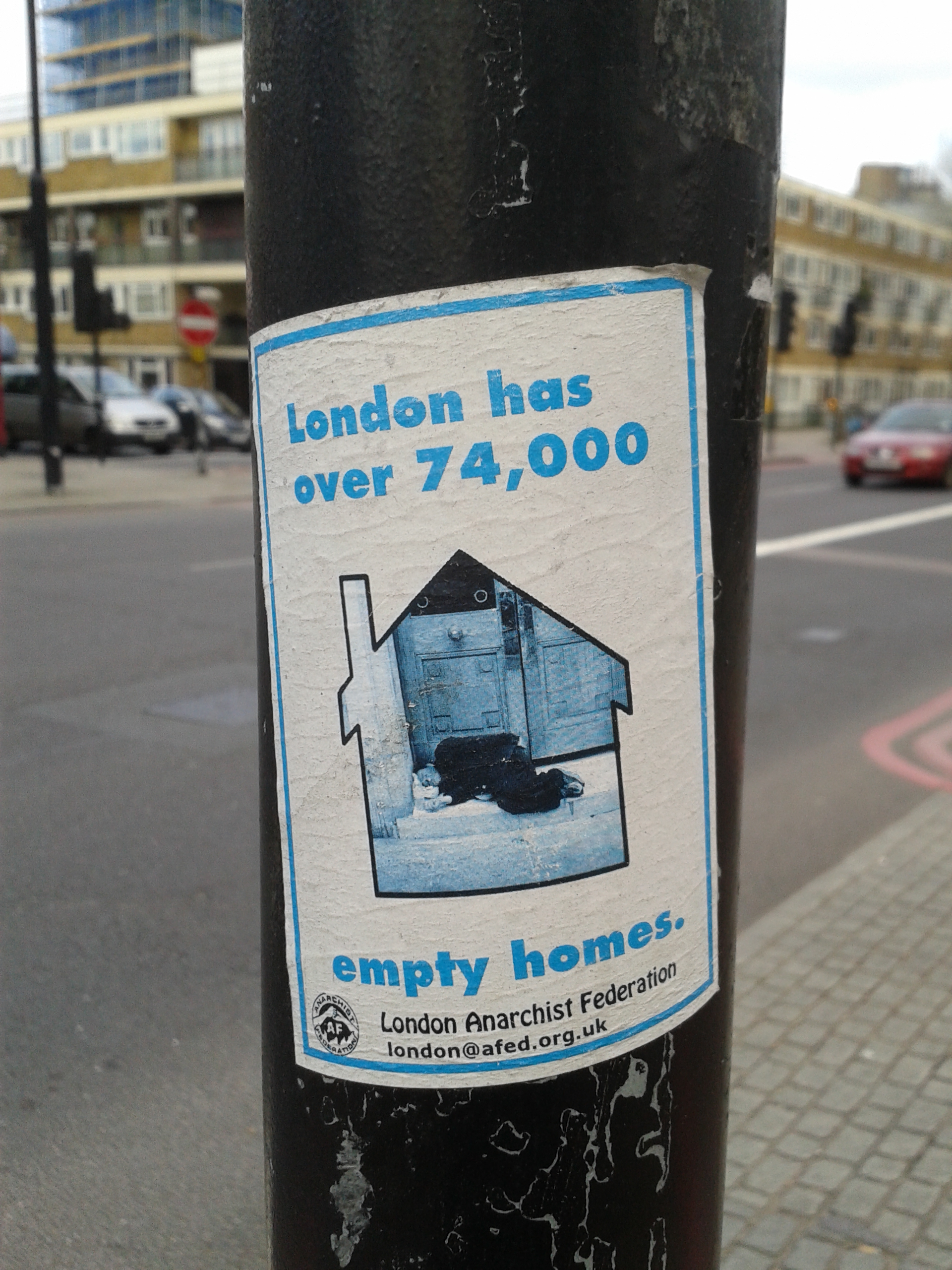 This sticker was produced by Housing Action Southwark and Lambeth, along with several others featured in this post (Photo: Hannah Awcock, Flint Street, SE1, 05/05/15).