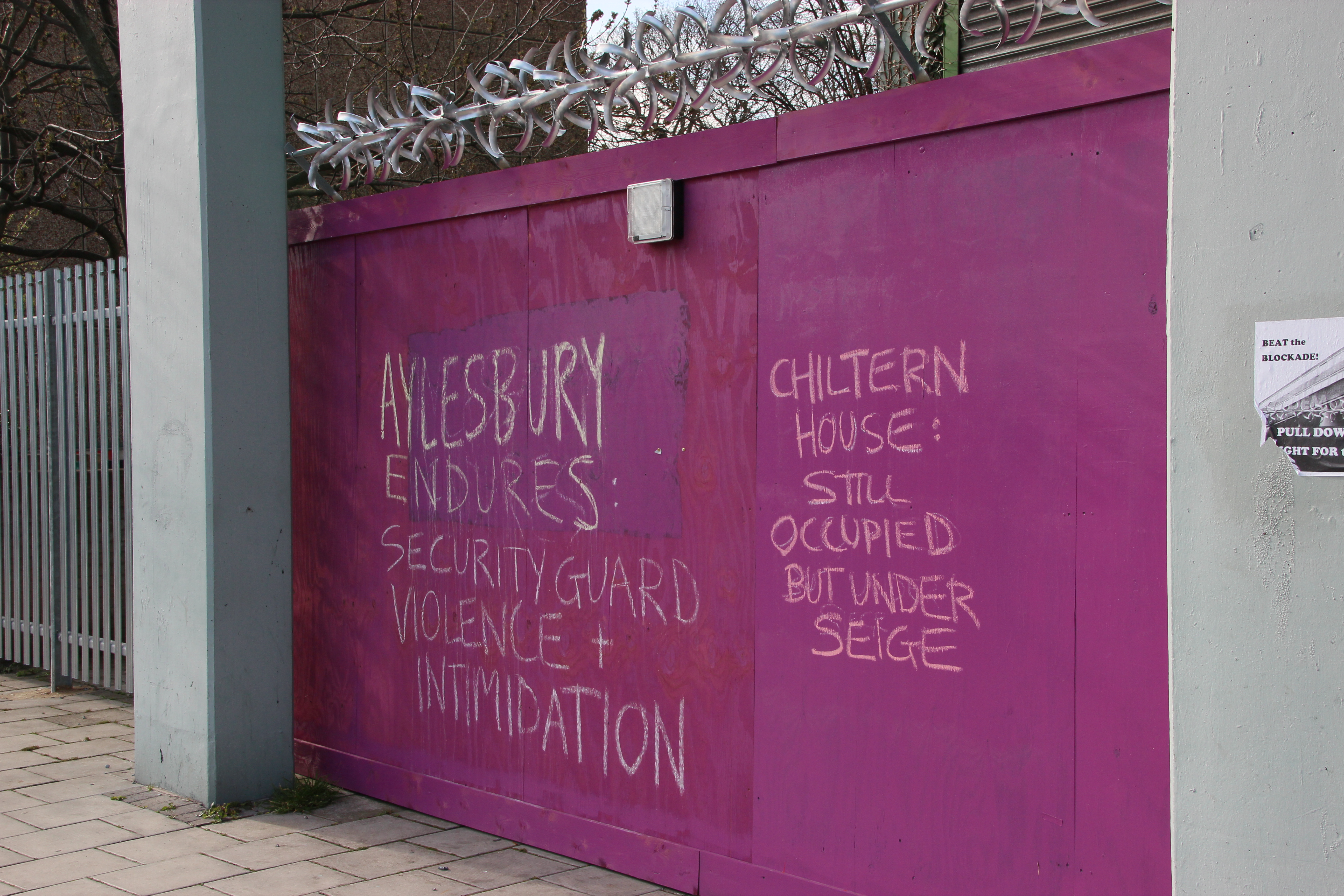 The fencing around Chiltern House on the Aylesbury Estate, which was occupied after the March for Homes on 31/01/15 (Photo: Hannah Awcock).