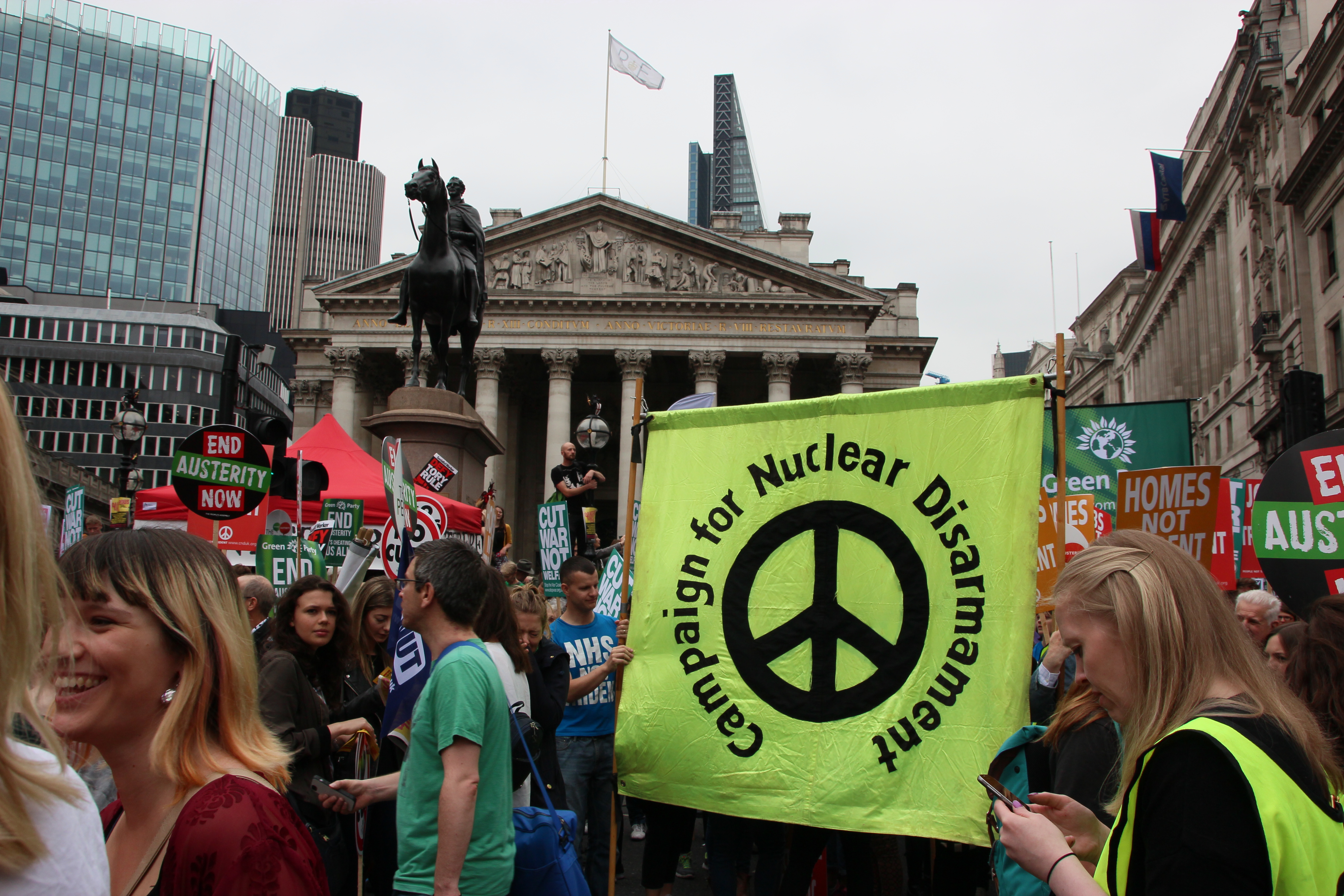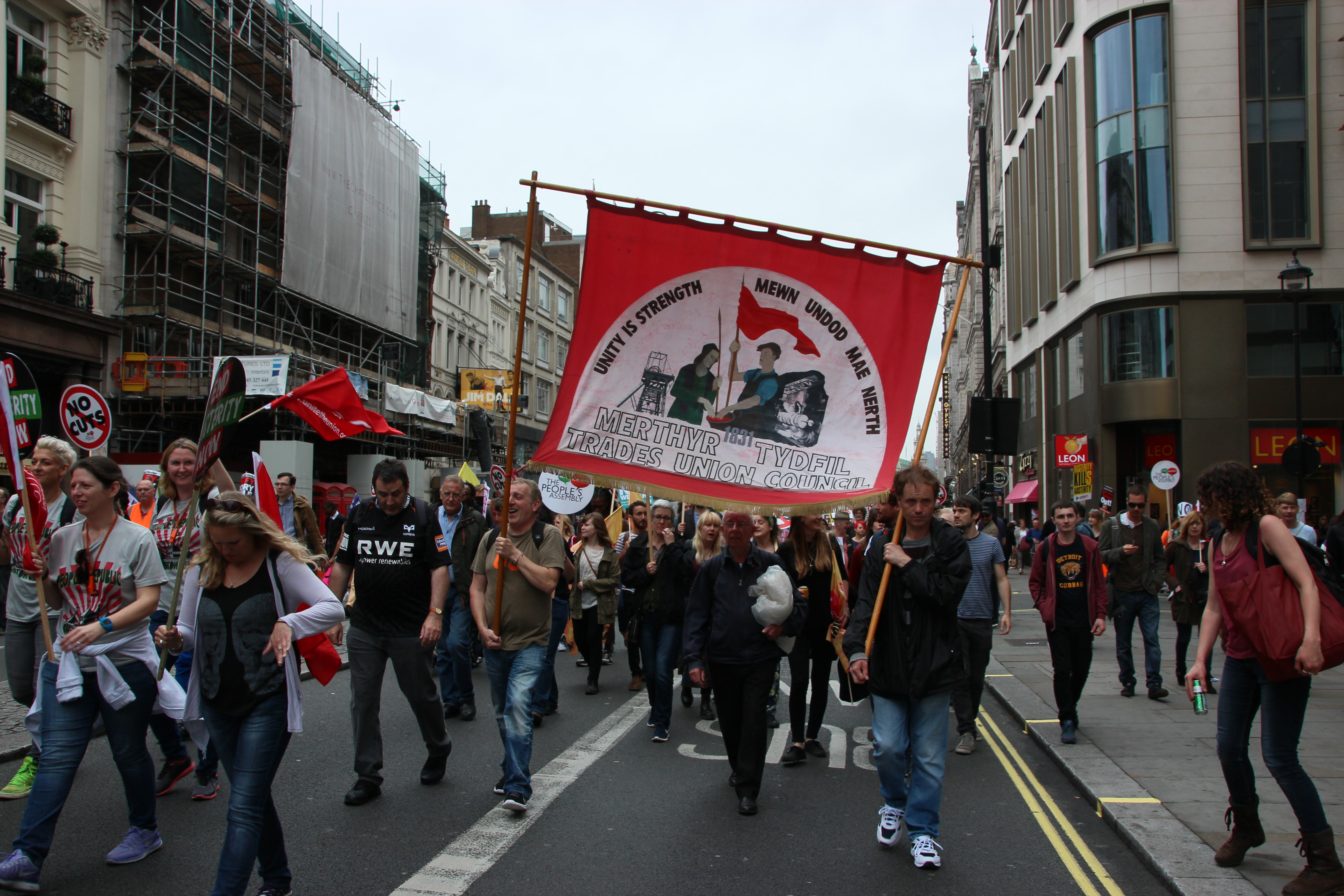 On Saturday the 20th of June, the People’s Assembly organised a massive national demonstration in London opposing the Conservative government’s policy of austerity, called End Austerity Now. The People’s Assembly is a coalition of anti-austerity campaigns and groups, so there was a wide variety of places and interests represented on the demonstration. Thousands of people turned up protest against the cuts, and I was one of them.