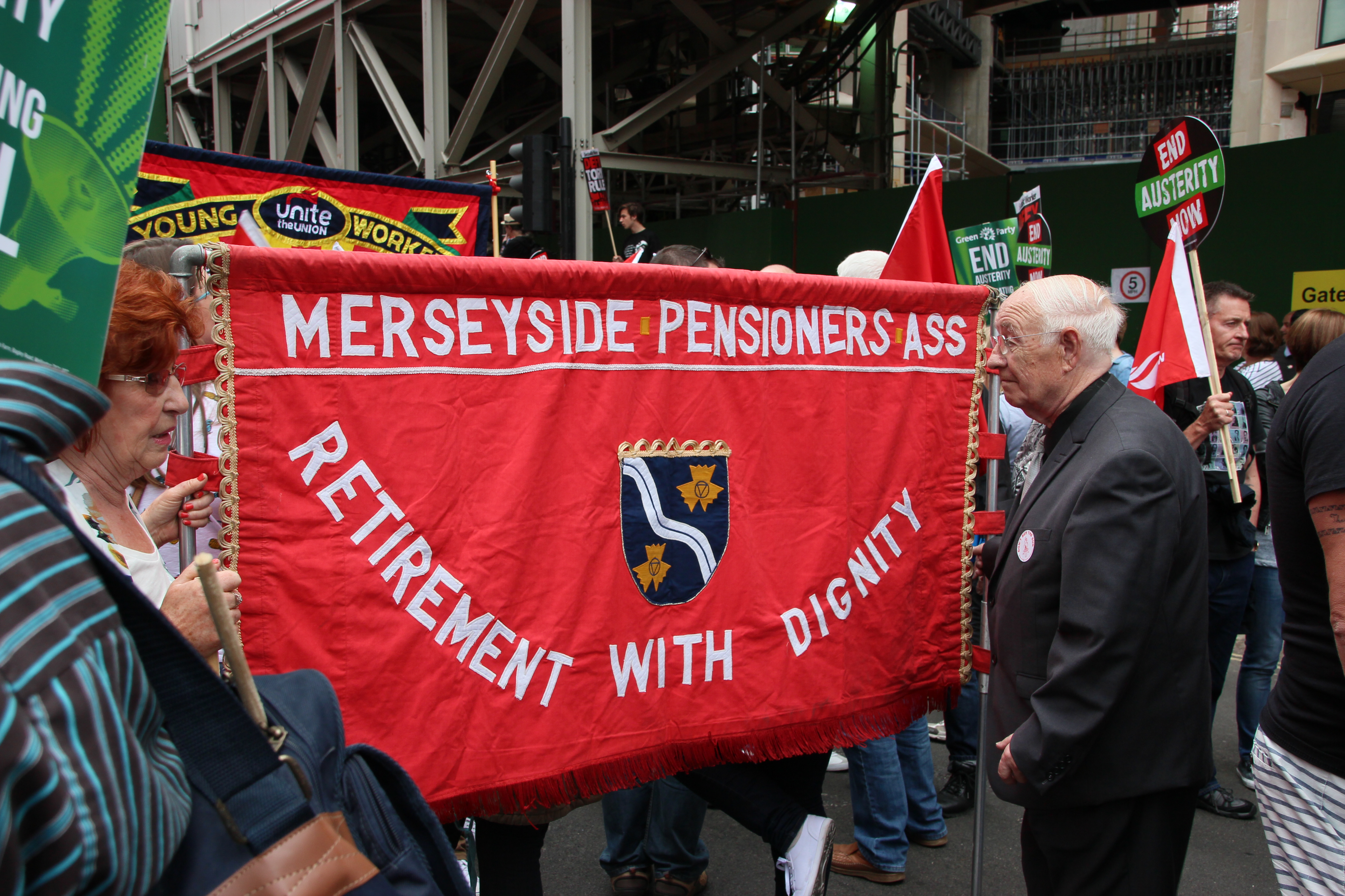 People of all ages attended the End Austerity Now demonstration, and I saw several pensioner’s organisations represented (Photo: Hannah Awcock).