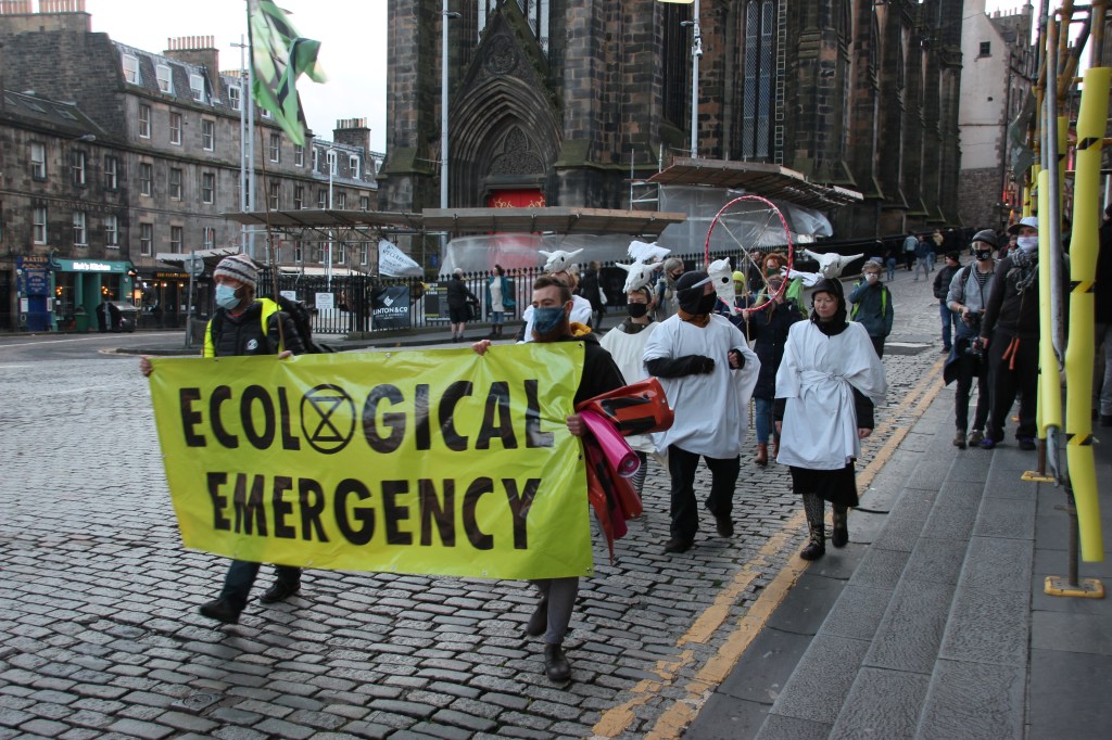 Last weekend I was out on the Royal Mile preparing for a Geographies of Protest walking tour for the third year students. It just so happened that I witnessed a protest organised by Extinction Rebellion whilst I was out and about. The protest was in two parts: the first was an animal die-in in West Parliament Square, and the second was a march down the Royal Mile from Edinburgh Castle to the Scottish Parliament. It is always interesting to witness a protest first hand, and this was no exception.