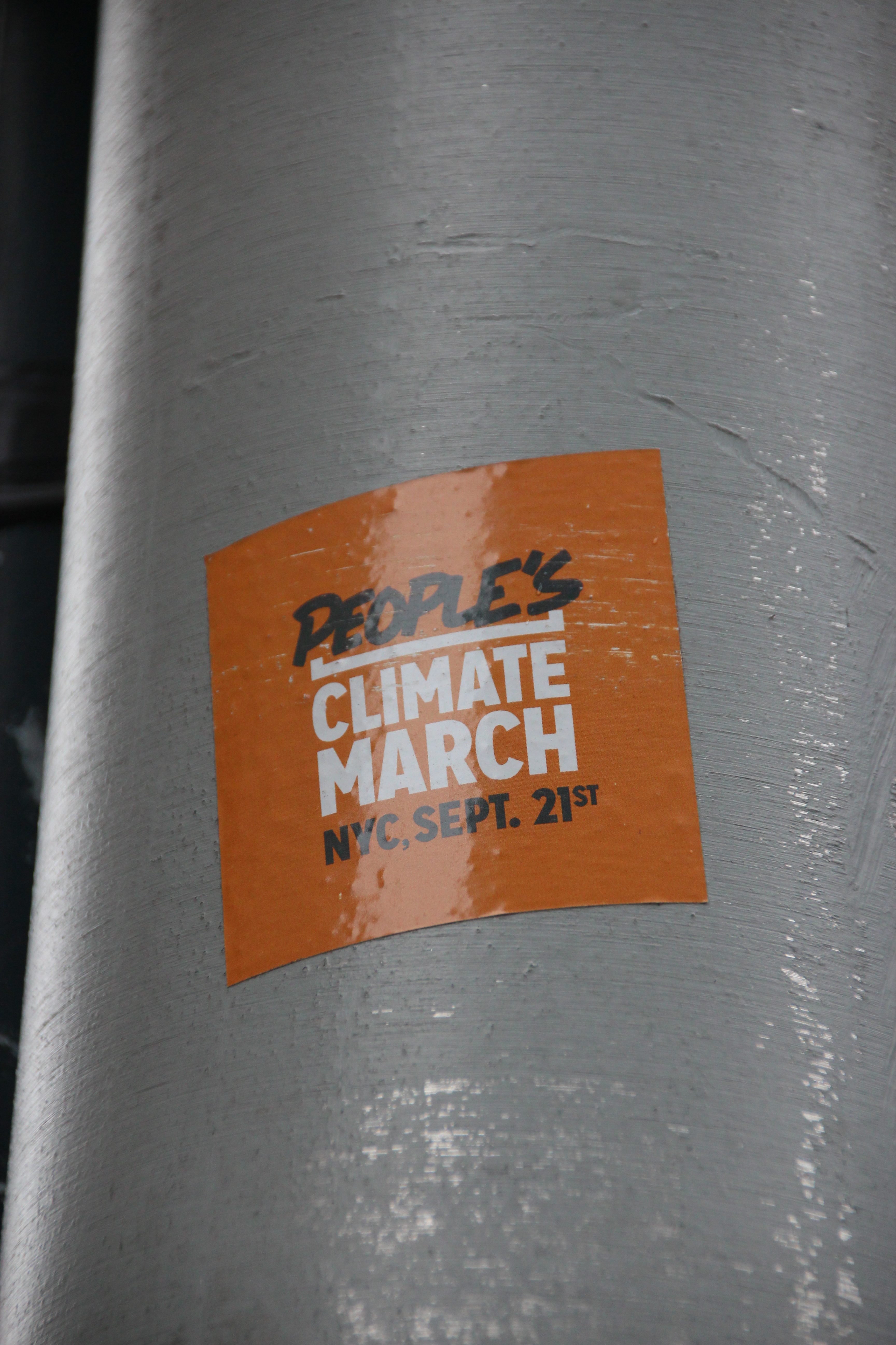 This sticker, advertising a climate march, could also be found in Spanish, a language with is widely spoken in America and New York (Photo: Hannah Awcock).