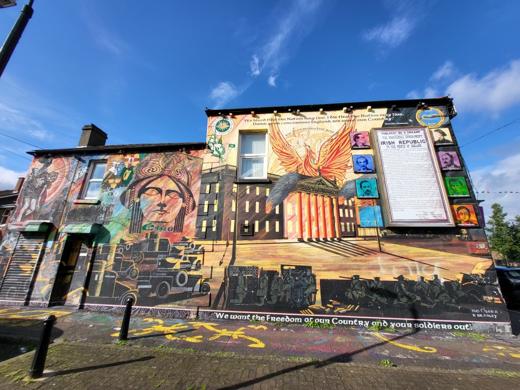 My summer holiday this year was a road trip around Ireland with my sister. Our first stop was Belfast, which was I very excited about. I love street art, and I love the history of rebellion and resistance, so it felt like the perfect city for me. Although Irish history is not really taught in English schools, I was aware of the euphemistically named ‘Troubles’ in a vague sense that was heavily influenced by my parents’ perceptions of it; Mum in particular was a little bit nervous about us going to Northern Ireland, even 25 years after the Good Friday Agreement. We both made an effort to get to know the history a little bit better before going (I highly recommend the BBC documentary series Once Upon a Time in Northern Ireland for a clear and concise account of the Troubles from start to ‘finish’). This is definitely one of those situations, however, where visiting a place gives you an insight that it is impossible to get from a book or a documentary.
