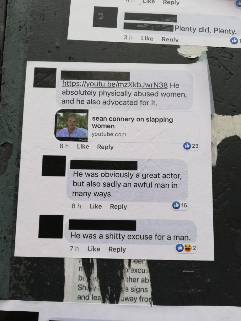 Some of the included comments defend Connery, but they were clearly selected to make us question how such a person could be so revered (Photo: Hannah Awcock).
