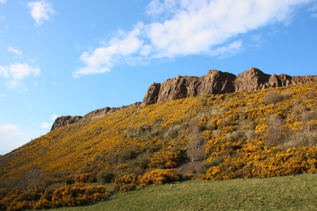 The Radical Road is a path that runs around Salisbury Crags in Holyrood Park. The path sits where the gorse becomes bare rock (Photo: Hannah Awcock).