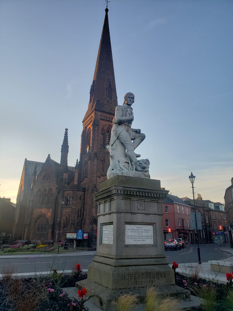 Another interesting question that the DIY statue raises is what kinds of acts make a person worthy of a statue. Most named statues are of people who did remarkable things in the fields of business, politics, sport, or culture. For example there is a large statue of Robert Burns, the famous Scottish poet who lived in the town for a while, at the top of Dumfries High Street. Decisions about who ‘deserves’ a statue are not simple, uncontested things. As controversies surrounding some statues such as the Dundas memorial in Edinburgh demonstrate, these decisions can be argued against and even reversed. The DIY statue encourages us to think about the standards we use to define a ‘local hero’. Should it only be people who are rich and famous? Why can’t we recognise people who ‘just’ contribute to the local community? After everything that’s happened the last few years, I think we all deserve to be celebrated a little bit just for existing. Thanks to the DIY statue anyone who can climb onto the plinth (it isn’t particularly accessible) can be commemorated, even temporarily.