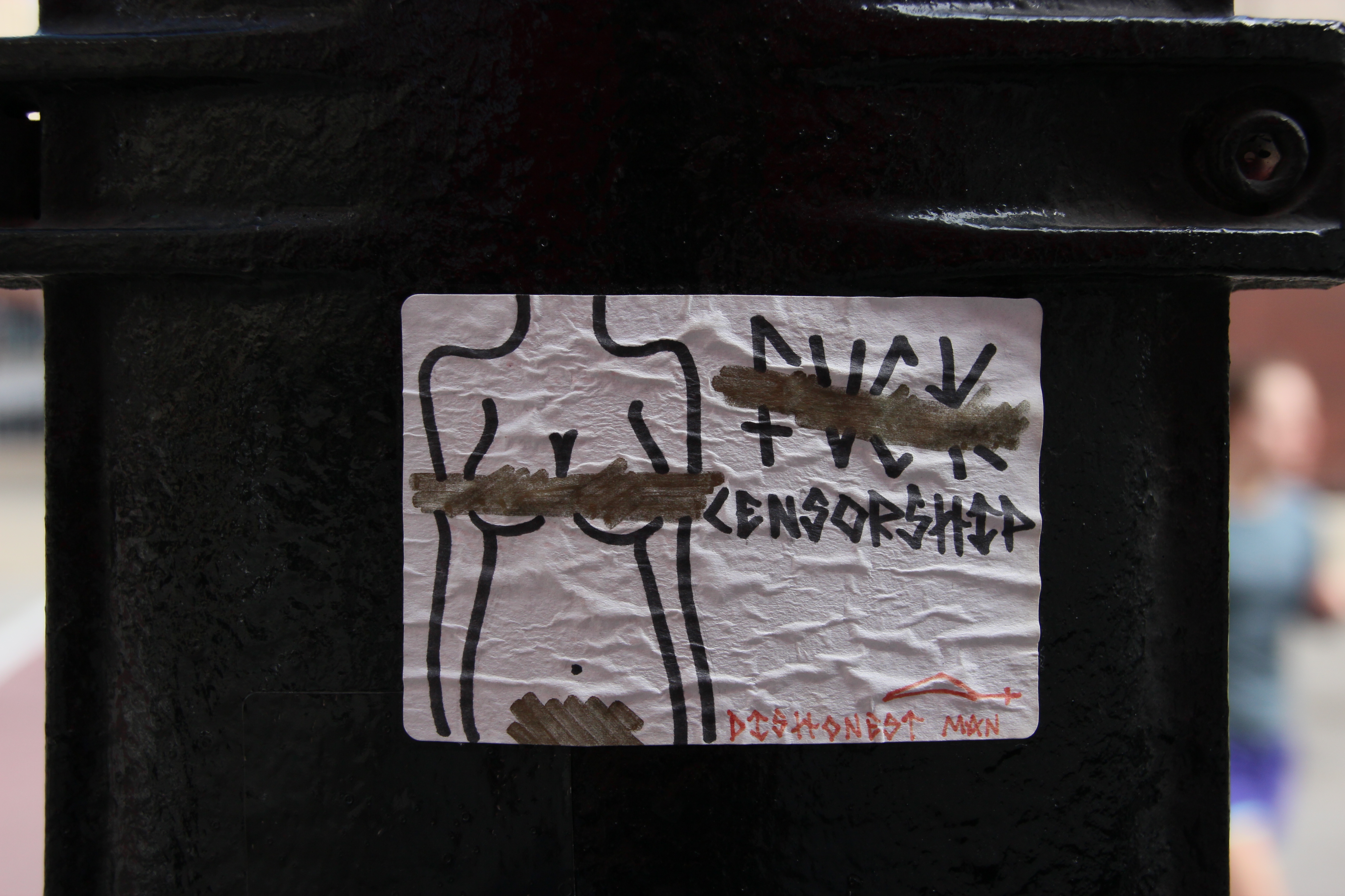 Another uncommon theme was feminism. This sticker criticises censorship of the female body…(Photo: Hannah Awcock)