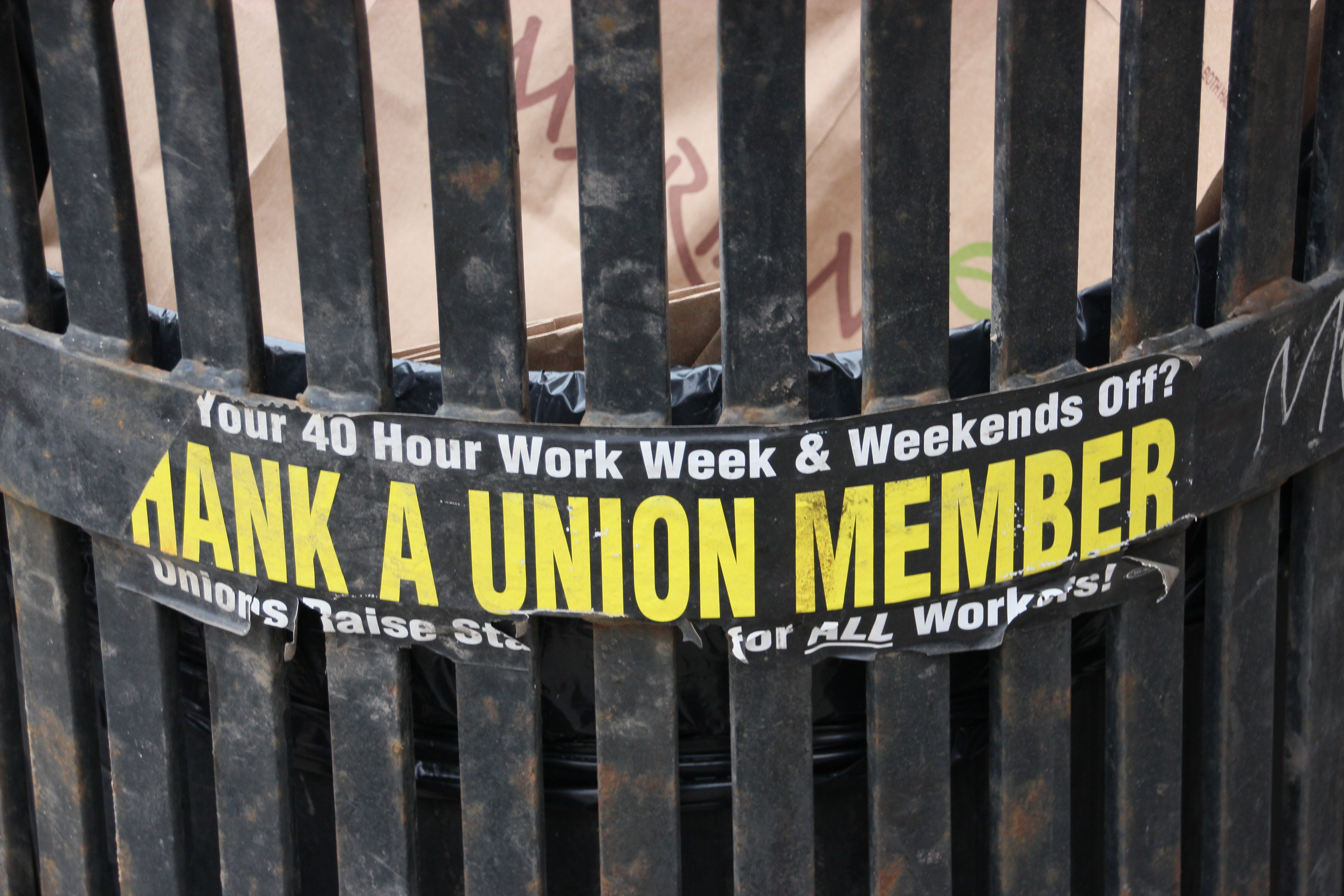Another recurring theme were unions. This sticker reminds people of the various workers’ rights that unions have fought for in the past. It is also a good example of how the message of stickers can become harder to decipher as they age and deteriorate (Photo: Hannah Awcock).